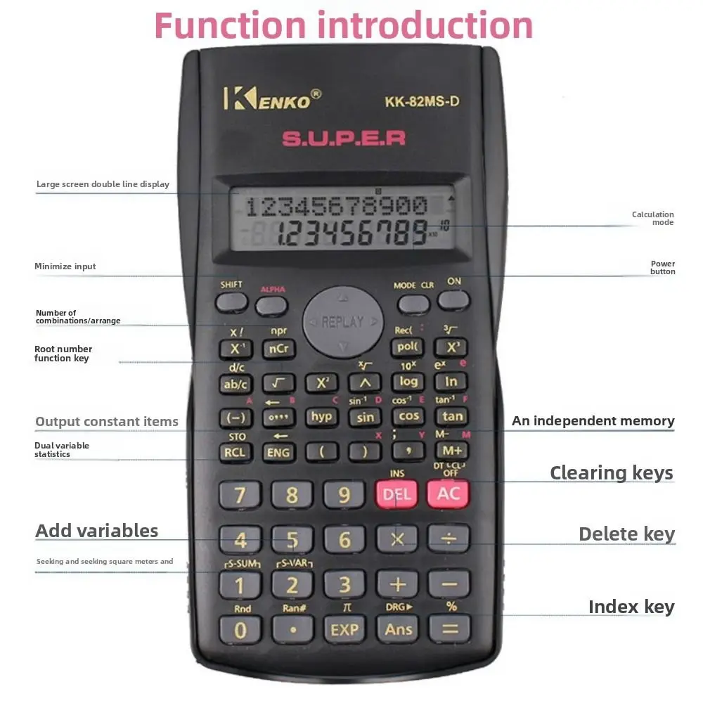 12 Digits Display Scientific Calculator 2-Line Screen Multifunctional 240 Functions Calculator Portable Simple Operation
