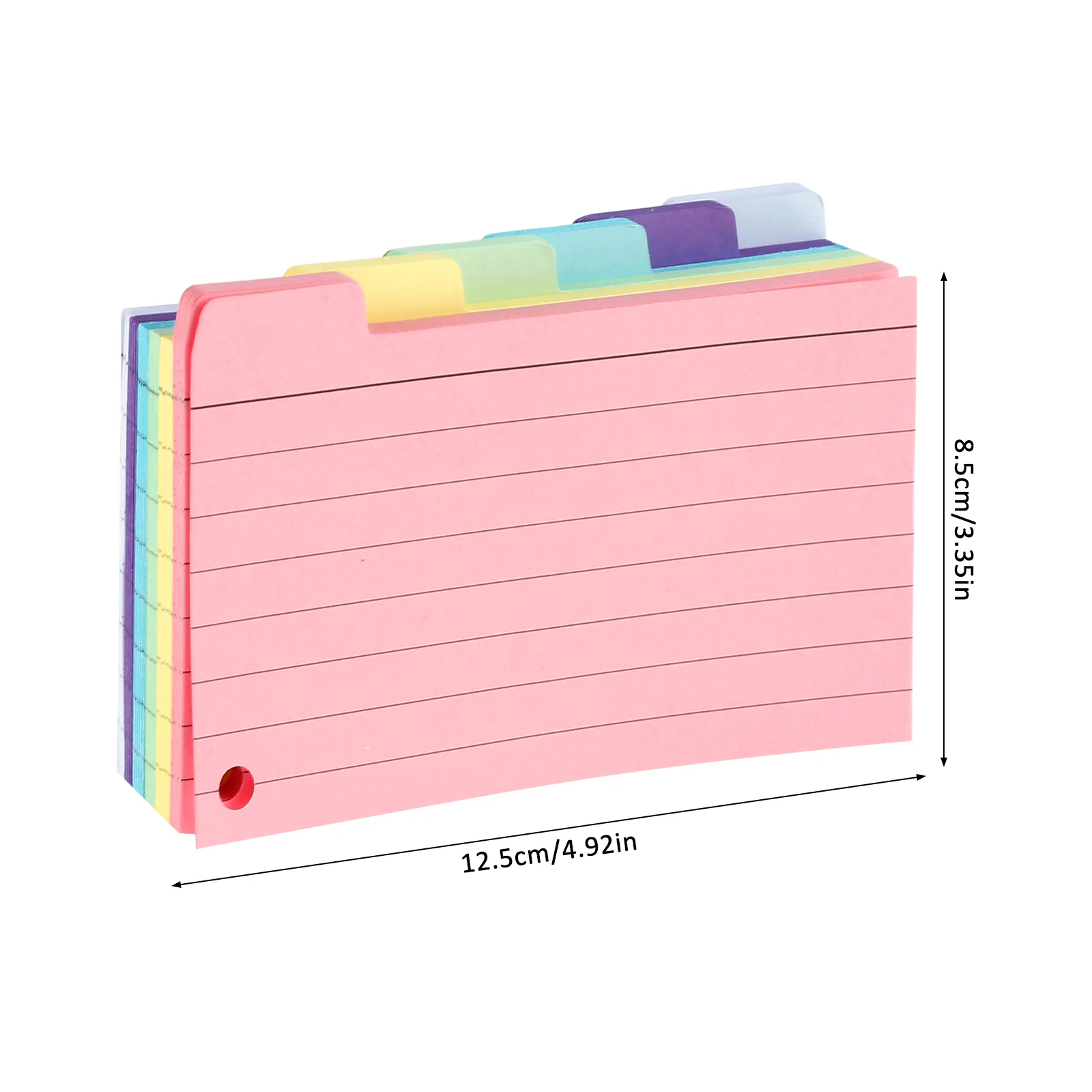 [300Pcs Set] This package contains 300 pieces tabbed index cards and 8 binder rings. The tabbed index cards have 6 colors and measure 85x125mm/3.34x 4.92in that is compact and portable. And the sufficient quality of the tabbed index cards enables long time to use for taking notes.